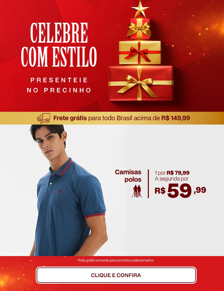 Surpreenda com um presente atemporal. A camisa polo, cuidadosamente dobrada dentro de uma caixa festiva com listras natalinas e um laço de fita, é a definição de estilo e bom gosto. Feita com tecido de alta qualidade, ela oferece conforto e um visual sofisticado para qualquer ocasião, tornando-se o presente perfeito para o homem que valoriza a elegância clássica.