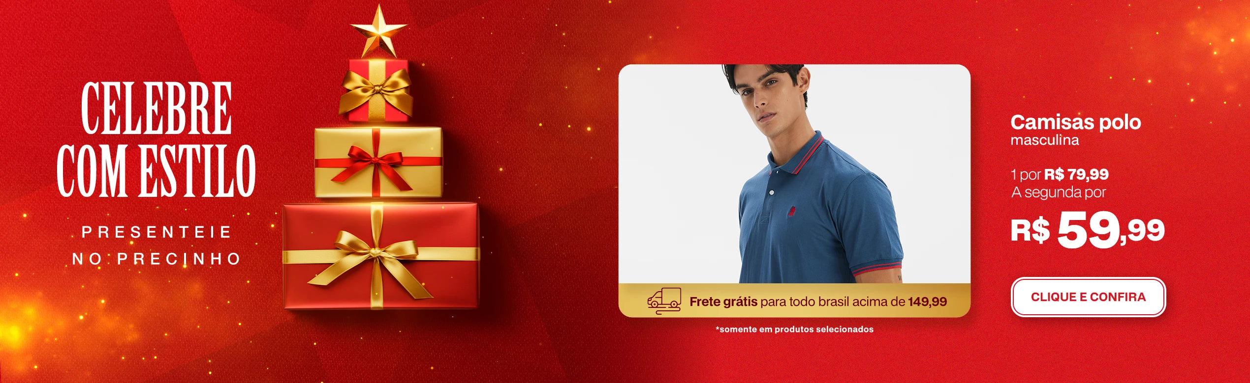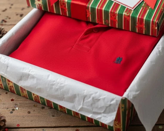 Surpreenda com um presente atemporal. A camisa polo, cuidadosamente dobrada dentro de uma caixa festiva com listras natalinas e um laço de fita, é a definição de estilo e bom gosto. Feita com tecido de alta qualidade, ela oferece conforto e um visual sofisticado para qualquer ocasião, tornando-se o presente perfeito para o homem que valoriza a elegância clássica.